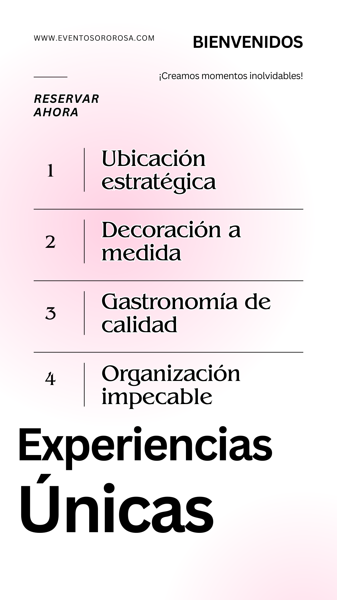 En Eventos Oro Rosa, transformamos cada ocasión especial en un momento inolvidable con atención personalizada y servicios a medida.