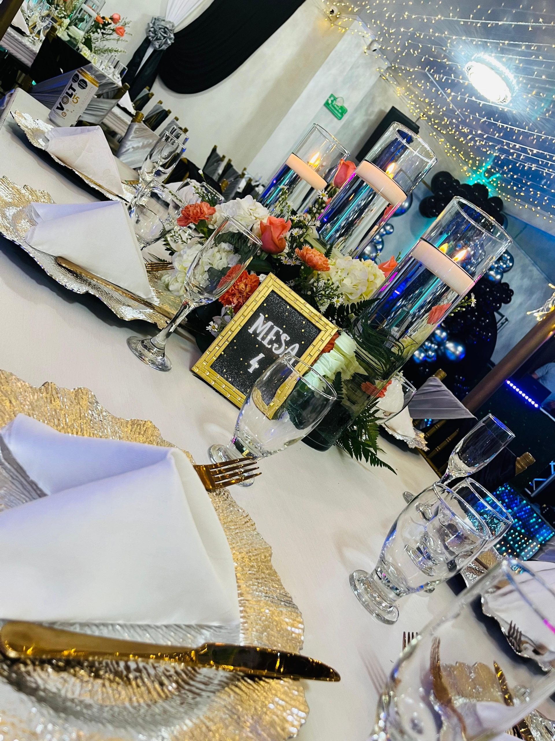 Organizamos tu boda o quince años con un servicio personalizado que incluye decoración, catering y entretenimiento para hacer de tu evento un día inolvidable.